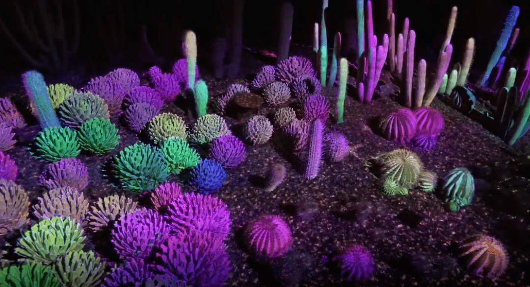 沙漠植物园成立于1937年。视觉艺术创意团队 Klip Collective将光影与沙漠植物结合在一起,打造了名为 Electric Desert的独特艺术体验。